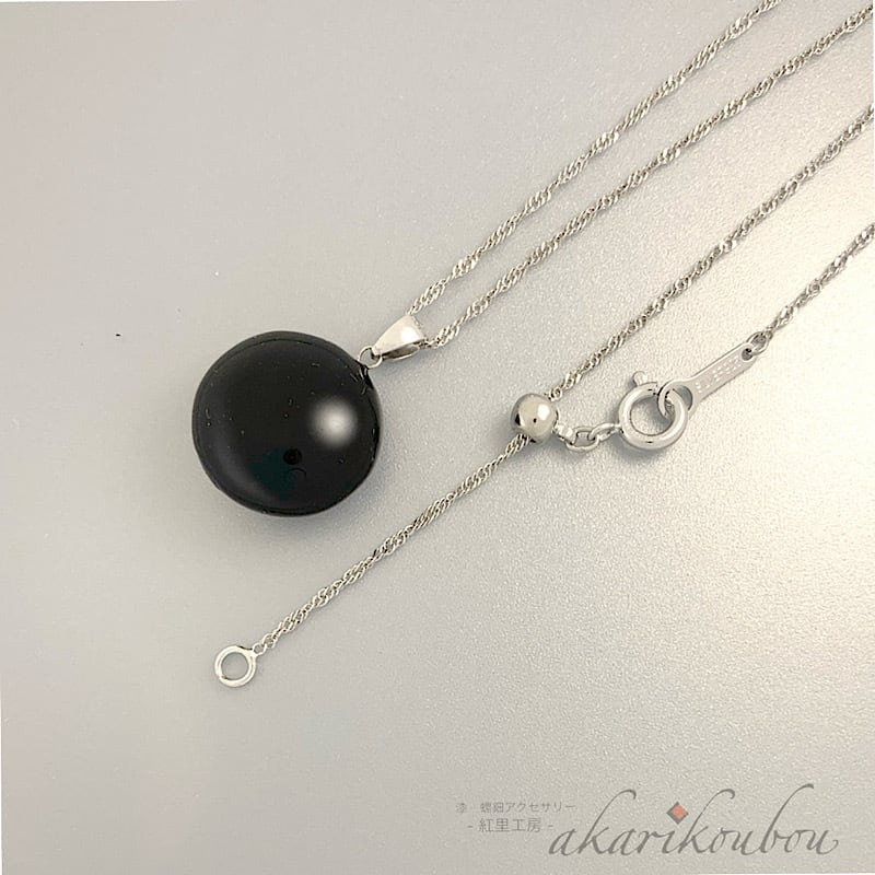 《予約商品》【sv925】漆ペンダント 螺鈿 金箔 プラチナ箔 漆黒アクセサリー:Silver925 ロジウム フリーアジャスターチェーン付
