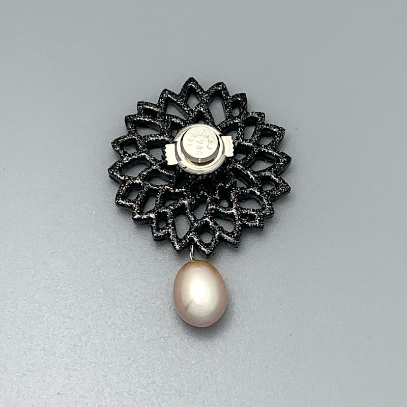 2024.11.14繊細な唐草模様があしらわれた、金沢箔ジュエリーの螺鈿ブローチ。 これは、ヒノキを彫刻し、漆を塗り重ねた上に純金箔と螺鈿を細工するという、気の遠くなるような工程を経て完成したブローチです。 高度な漆塗り技術と、細部まで気を配った細やかな螺鈿細工。 身に着ける人の年齢は問わない、恒久的なデザインで人目を惹きます。