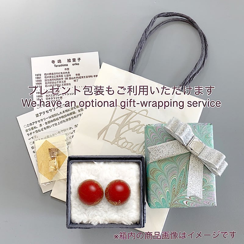 2024.10.18紅里工房では、漆や螺鈿ジュエリーのプレゼント包装も承っております。 大切な方へ贈り物や、ご自分へのご褒美には、既製品のようにどこでも手に入るものではなく、世界にひとつだけの漆アクセサリーや螺鈿ジュエリーがふさわしいでしょう。 どのジュエリーも、ほかには無い美しい色あいやユニークな形が特徴なので、人目を惹くのは明らか。 趣味の良さやハイセンスをかんじさせる一品ぞろいです。