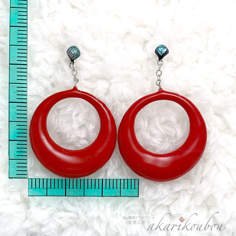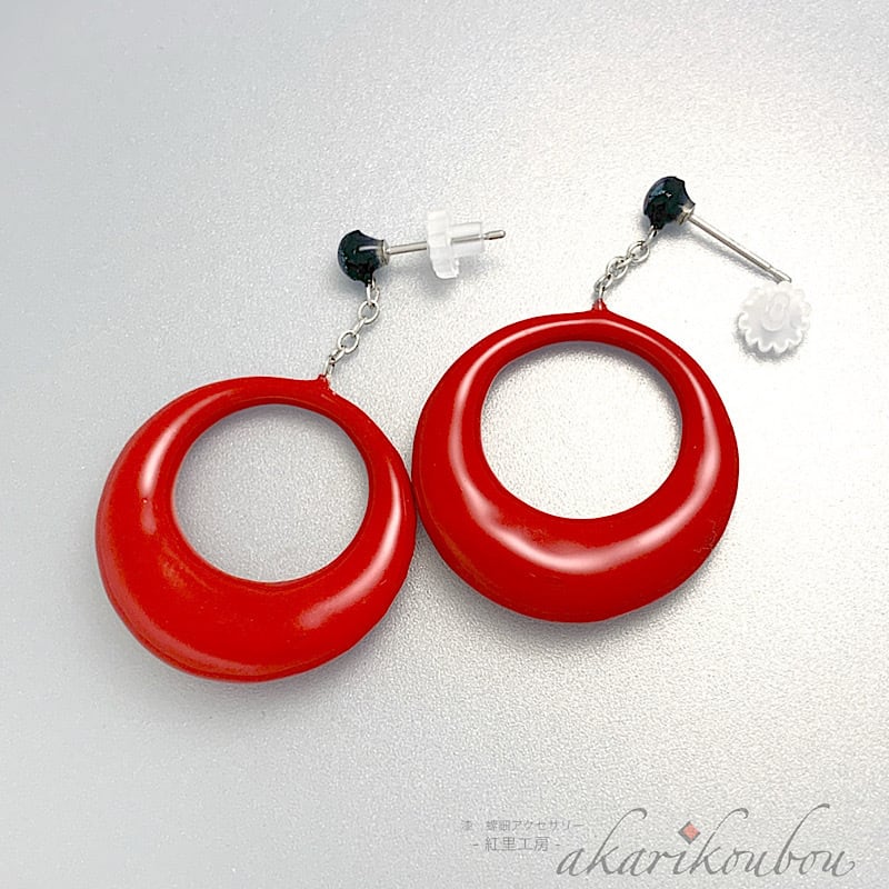 【Pt900】漆ピアス サークルリング 朱漆 赤 輪 スイングピアス:プラチナポストピアス 還暦祝い 贈り物 漆アクセサリー
