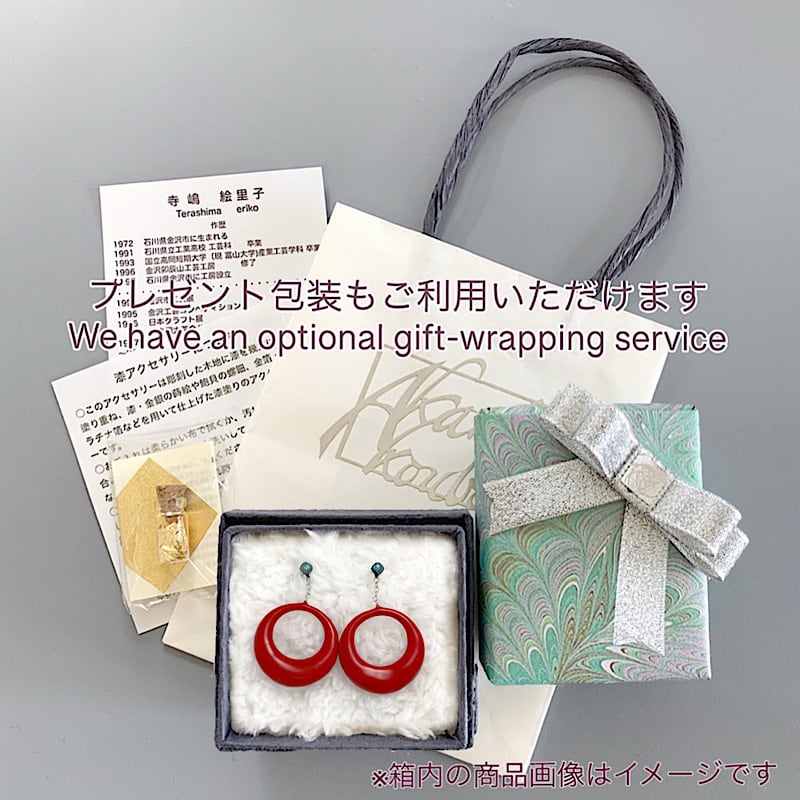 2024.10.18紅里工房では、漆や螺鈿ジュエリーのプレゼント包装も承っております。 大切な方へ贈り物や、ご自分へのご褒美には、既製品のようにどこでも手に入るものではなく、世界にひとつだけの漆アクセサリーや螺鈿ジュエリーがふさわしいでしょう。 どのジュエリーも、ほかには無い美しい色あいやユニークな形が特徴なので、人目を惹くのは明らか。 趣味の良さやハイセンスをかんじさせる一品ぞろいです。
