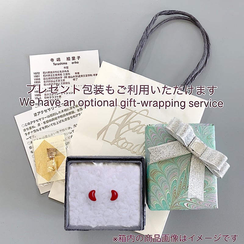 2024.10.18紅里工房では、漆や螺鈿ジュエリーのプレゼント包装も承っております。 大切な方へ贈り物や、ご自分へのご褒美には、既製品のようにどこでも手に入るものではなく、世界にひとつだけの漆アクセサリーや螺鈿ジュエリーがふさわしいでしょう。 どのジュエリーも、ほかには無い美しい色あいやユニークな形が特徴なので、人目を惹くのは明らか。 趣味の良さやハイセンスをかんじさせる一品ぞろいです。
