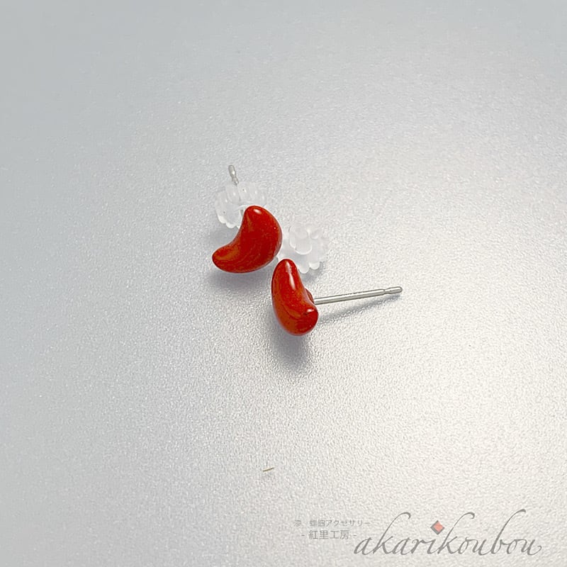 小さな朱漆塗りの赤色ピアス。