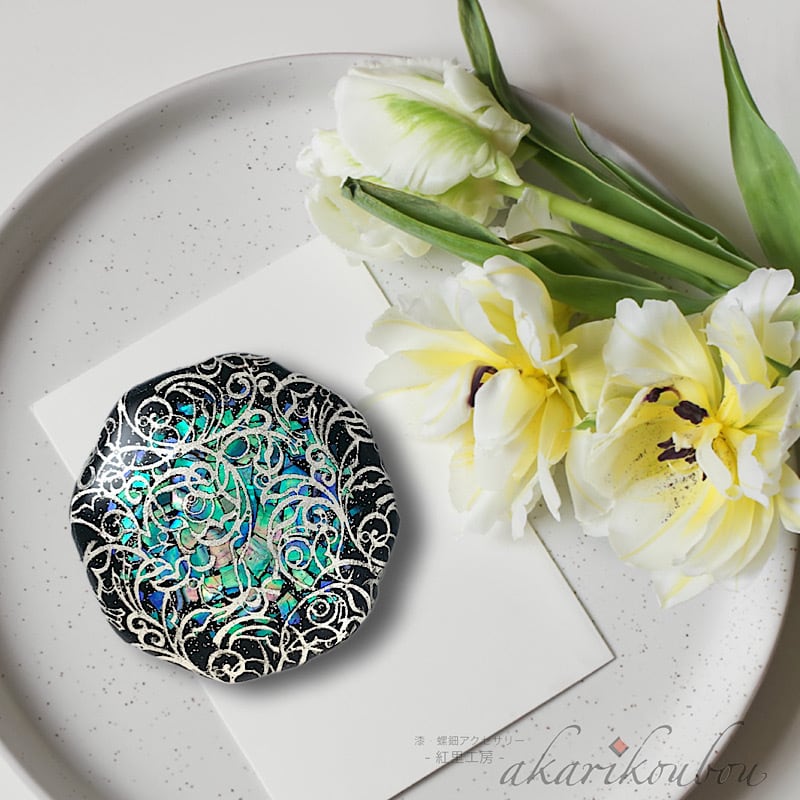 ブラックオパールのような輝きは螺鈿好きな方にもきっと喜んで頂けることでしょう。