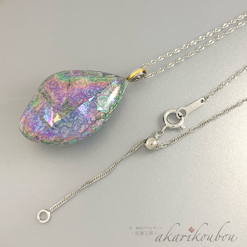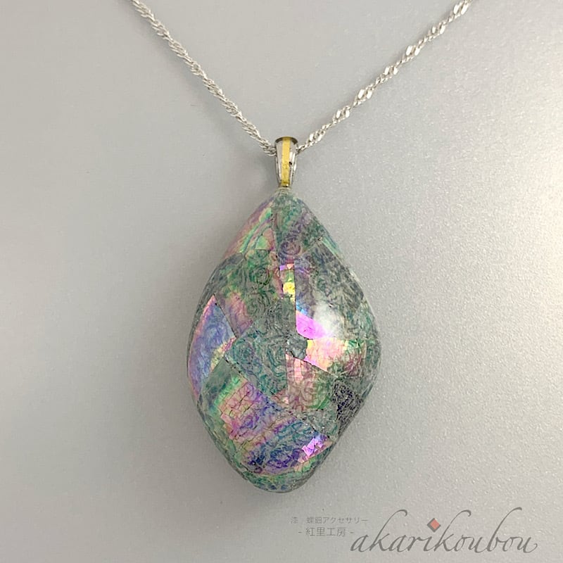 【sv925】螺鈿ペンダント 変わり塗り 螺鈿 花びら型 プラチナ箔:金沢漆器 漆工芸 螺鈿ジュエリー