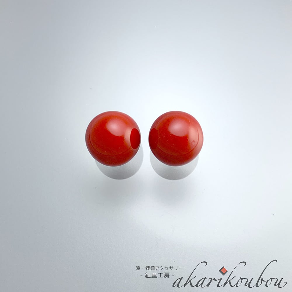 朱漆塗りの丸玉8mm赤色ピアス。