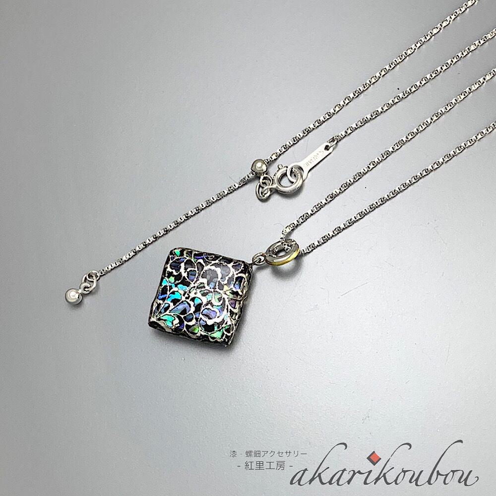 《予約商品》【sv925】螺鈿ペンダント プラチナ箔 唐草紋様 螺鈿 漆工芸アクセサリー : スライドアジャスター 金沢漆器 漆工芸 螺鈿ジュエリー