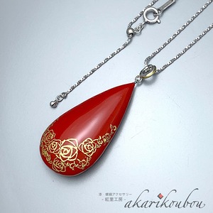 《予約商品》【sv925】漆ペンダント 薔薇モチーフ 雫型 赤 純金箔 漆アクセサリー :Silver925 ロジウム フリーアジャスターチェーン 金沢漆器 金箔工芸