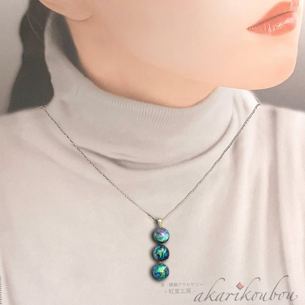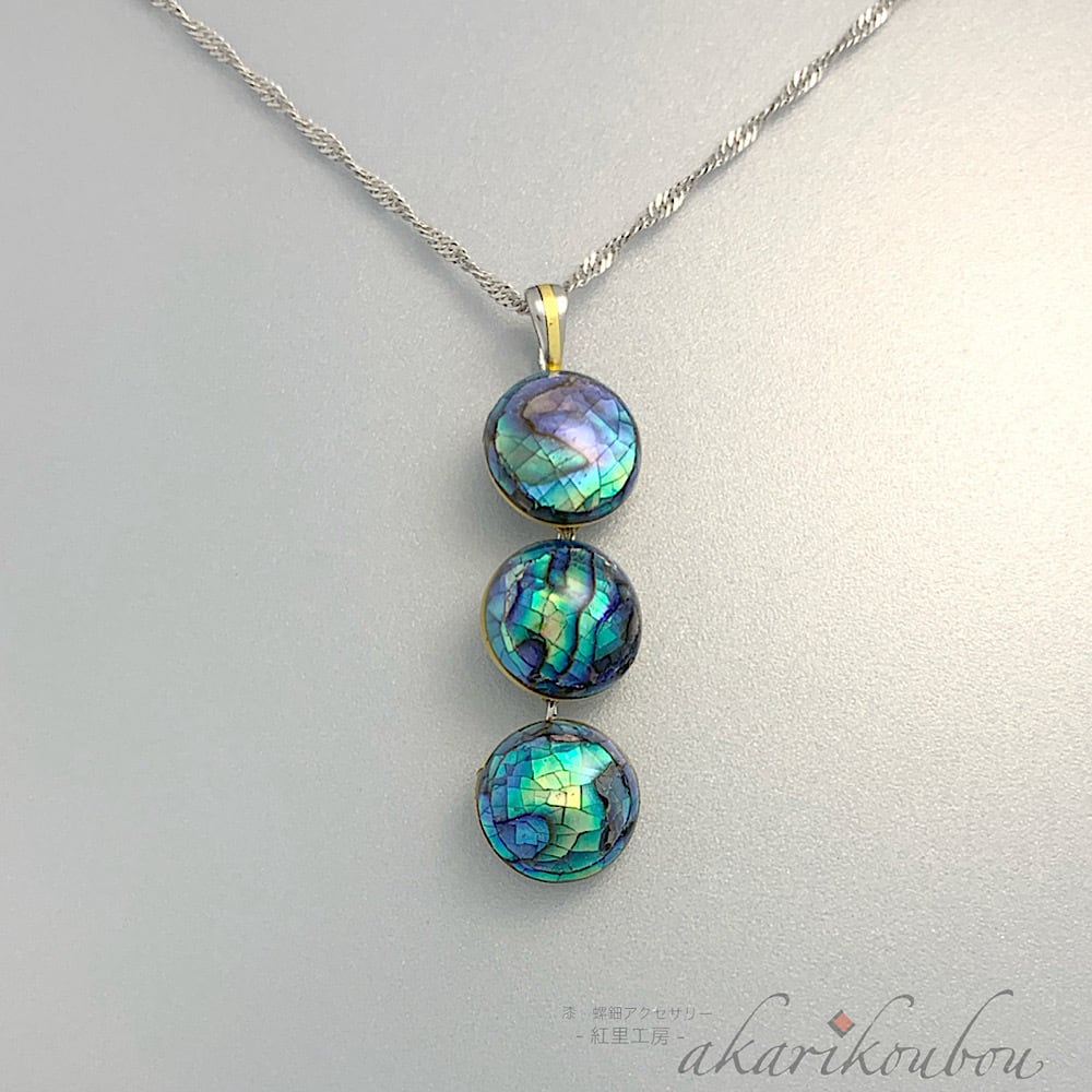 【sv925】螺鈿ペンダント 3つ玉 瑠璃色螺鈿 漆アクセサリー : スライドアジャスター 金沢漆器 漆工芸 螺鈿ジュエリー