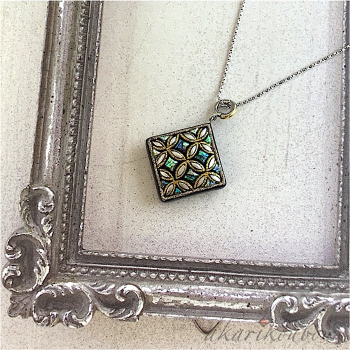 《予約商品》【sv925】螺鈿 蒔絵ペンダント 純金蒔絵 銀蒔絵 プラチナ箔 七宝つなぎ紋様 Ⅱ 漆アクセサリー : スライドアジャスター 金沢漆器 漆工芸 螺鈿ジュエリー