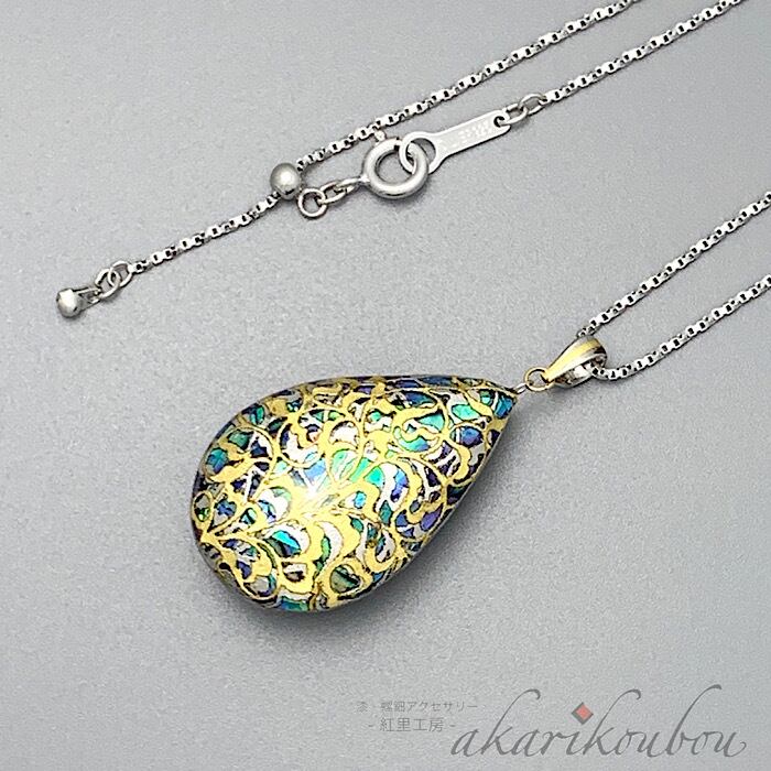 《予約商品》【sv925】唐草模様 箔かさね 黒漆と瑠璃色螺鈿のリバーシブルペンダント 螺鈿 純金箔 プラチナ箔: 金沢漆器 箔工芸 螺鈿ジュエリー