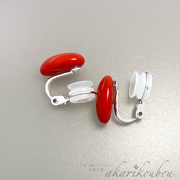 2025.7.2これからの季節にもピッタリな赤い楕円形の漆イヤリング。 小さめのイヤリングですが、鮮やかな朱色が上品な存在感を放ちます。 イヤリングの金具は特許商品でもある「ソフトタッチ」の無痛金具なので、長時間ストレスなく着け続けることができます。 ピアスへの作り替えもご依頼いただけますので、お気軽に紅里工房にご相談ください。