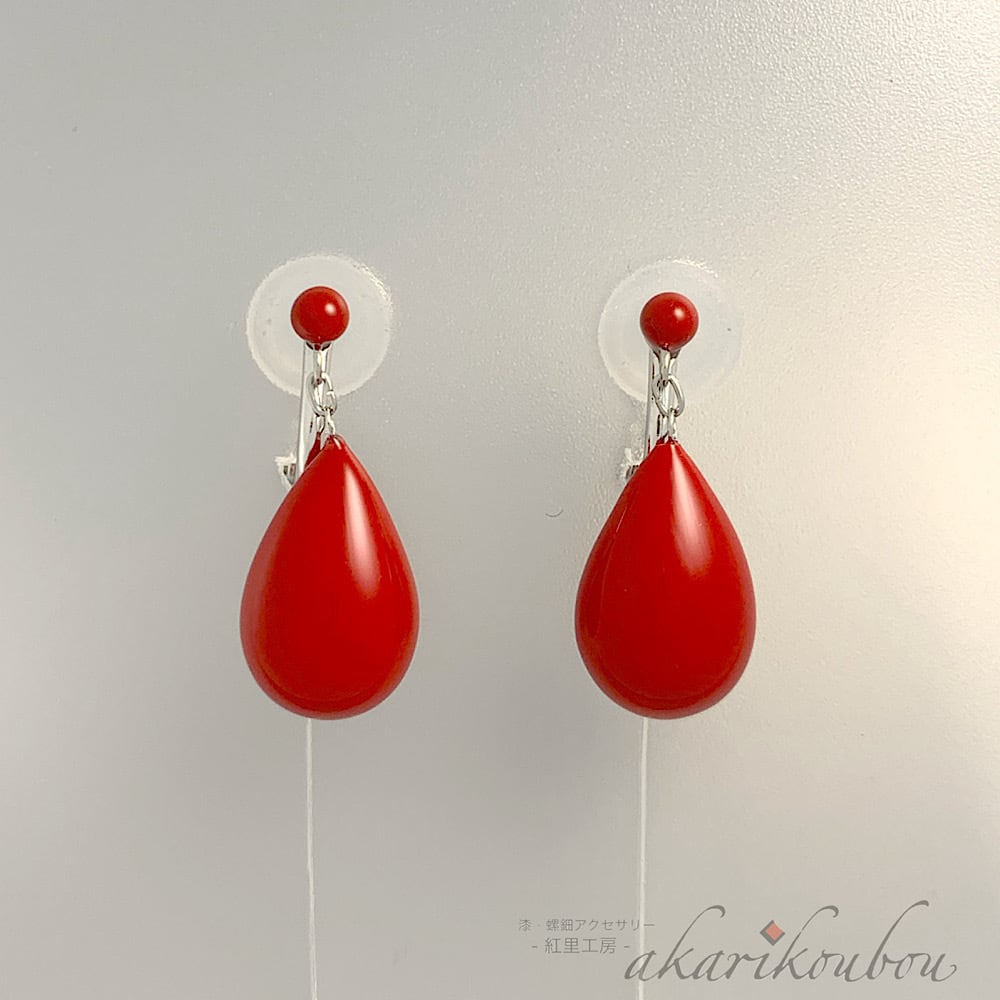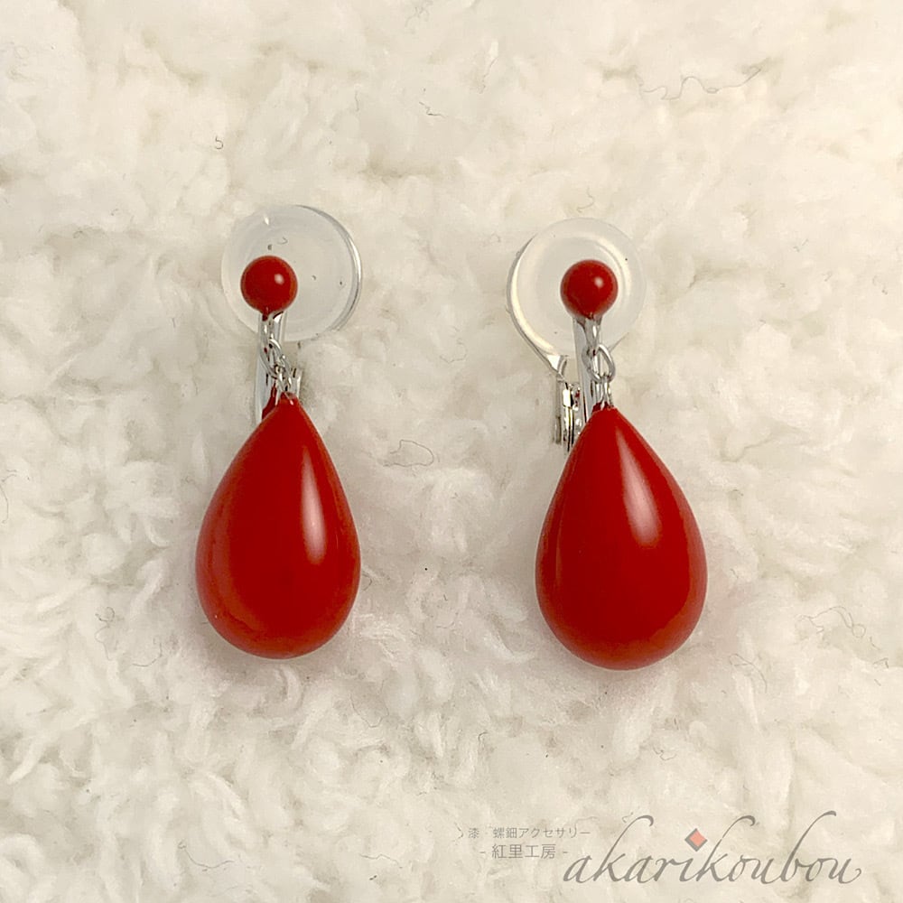 【sv925】漆イヤリング 赤 朱漆 雫型 漆アクセサリー : 金沢漆器