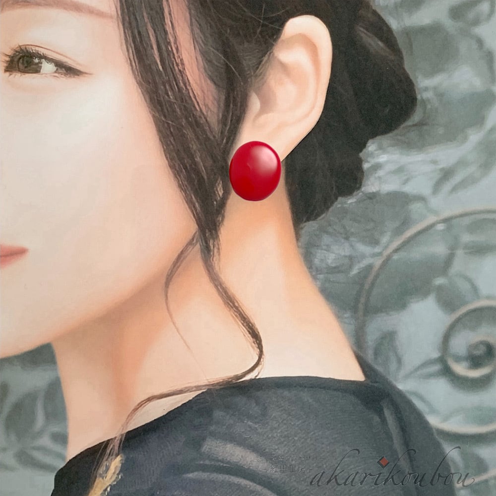 赤い楕円形漆イヤリング。少し大きめの飽きが来ない使いやすい定番のイヤリング。